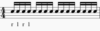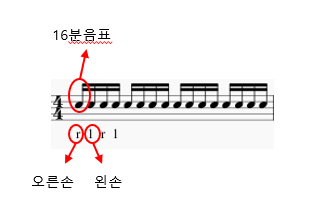 일반적으로 볼 수 있는 4분의 4박자 1마디 안에 양손을 번갈아가면서 16번을 치는 연습이다.